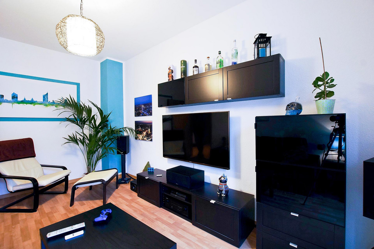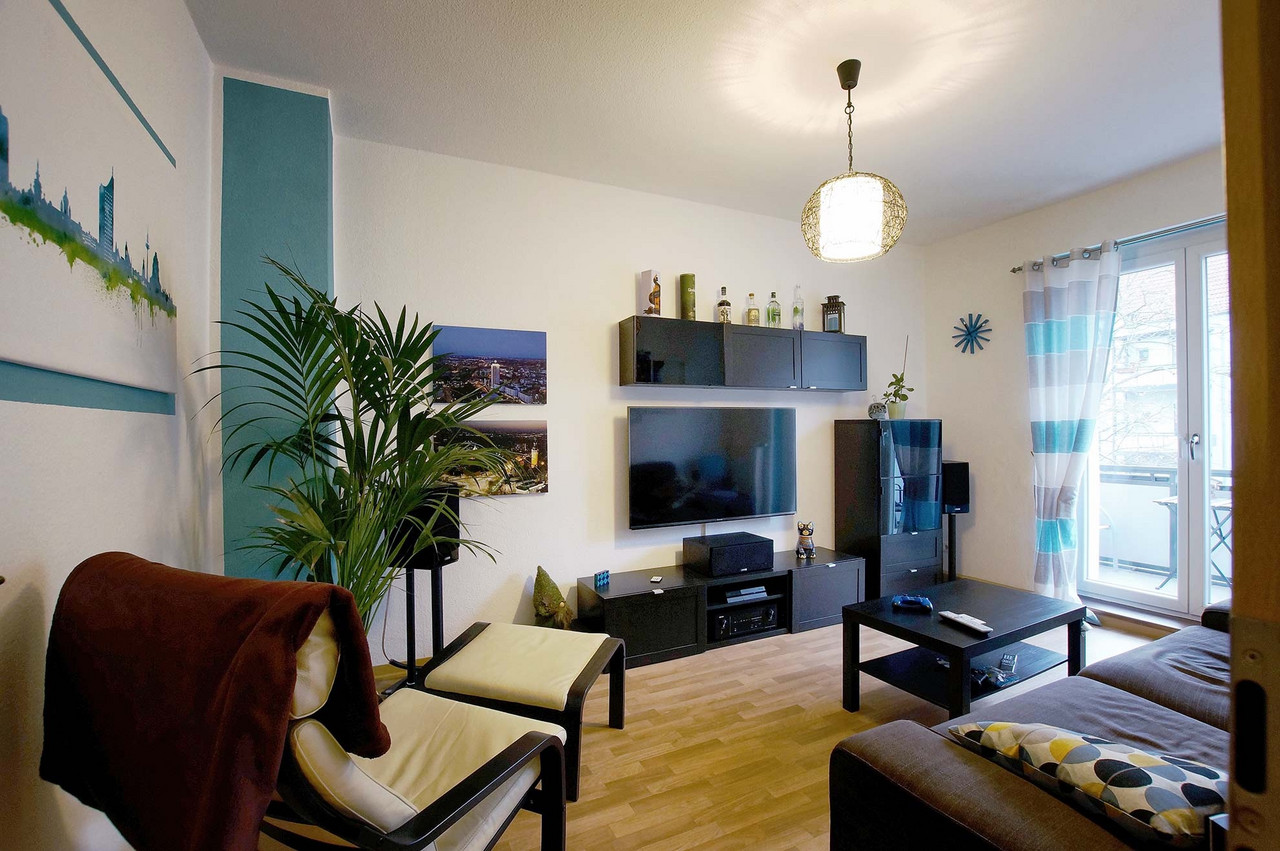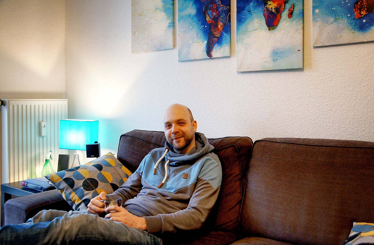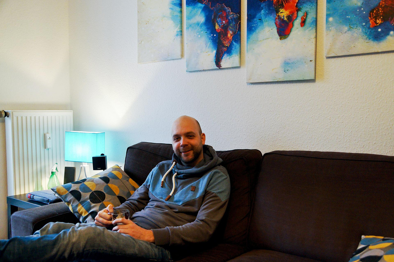 Männer-Wohlfühlzimmer Philipp S. Was ein Männer-Wohlfühlzimmer ist? Eine bequeme Couch steht drin, es gibt einen großen Fernseher, eine Playstation (FIFA) und einen am Tisch fest installierten Flaschenöffner. Man muss kein chronischer Biertrinker sein, um das gut zu finden – meinen jedenfalls die Freunde, wenn sie zum Chillen oder Zocken kommen. Für Philipp S. bedeutet Wohnen das Umsetzen eines eigenen Stils, vielleicht auch einer Haltung. Er liebt schwarz, kombiniert mit Farben. Sie sind bewusst als Möbelfronten, breite Farbstreifen an Wänden oder angedeuteten Rahmen eingesetzt. Das Blau in der Küche hat es ihm angetan. Mit Hilfe von OBI hat er entsprechend der räumlichen Gegebenheiten und dem französischen Fenster als Dominante die Küchenmöbel selbst gebaut. Einige der Emailleschilder hat er sich aus den USA mitgebracht. Er war schon mehrmals dort, vor allem im warmen Florida. Die Connewitzer Wohnung ist seine Basisstation für die Reisen, zu den Konzerten im Coney Island, für die Ausflüge in den Auenwald, zur Constanze oder in die Südbrause und zum monatlichen Essen im Freundeskreis mit wechselnder Gastronomie. Der Außendienstler ist dienstlich und privat viel unterwegs. Oft auch mit Kamera. Landschafts- und Architekturfotografie sind sein Metier. Und wenn es doch mal an der nötigen Motivation mangelt, schätzt er seinen Balkon, insbesondere im Sommer. Vergangenes Jahr stand hier eine 2 Meter hohe rote Sonnenblume. Übersicht Geschichtennächste Geschichte vorherige