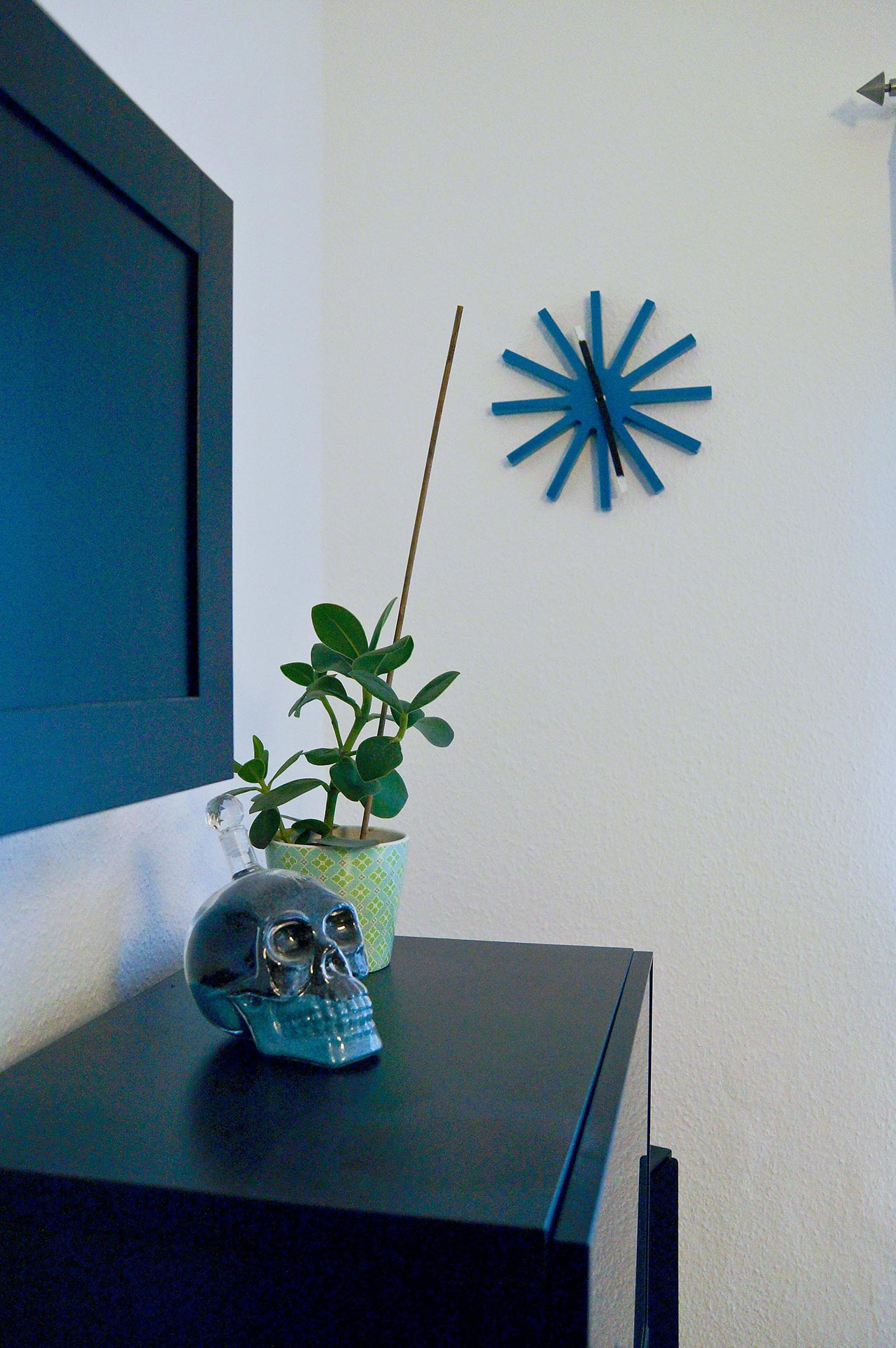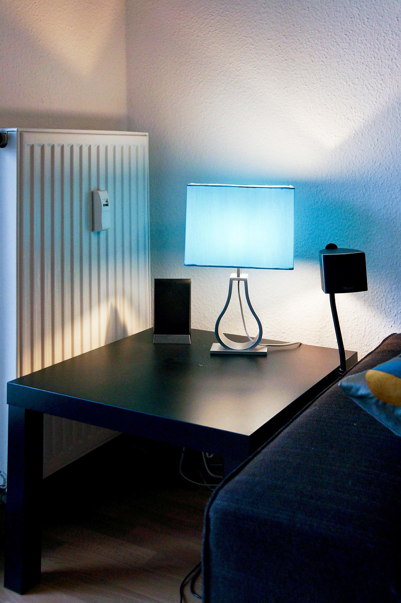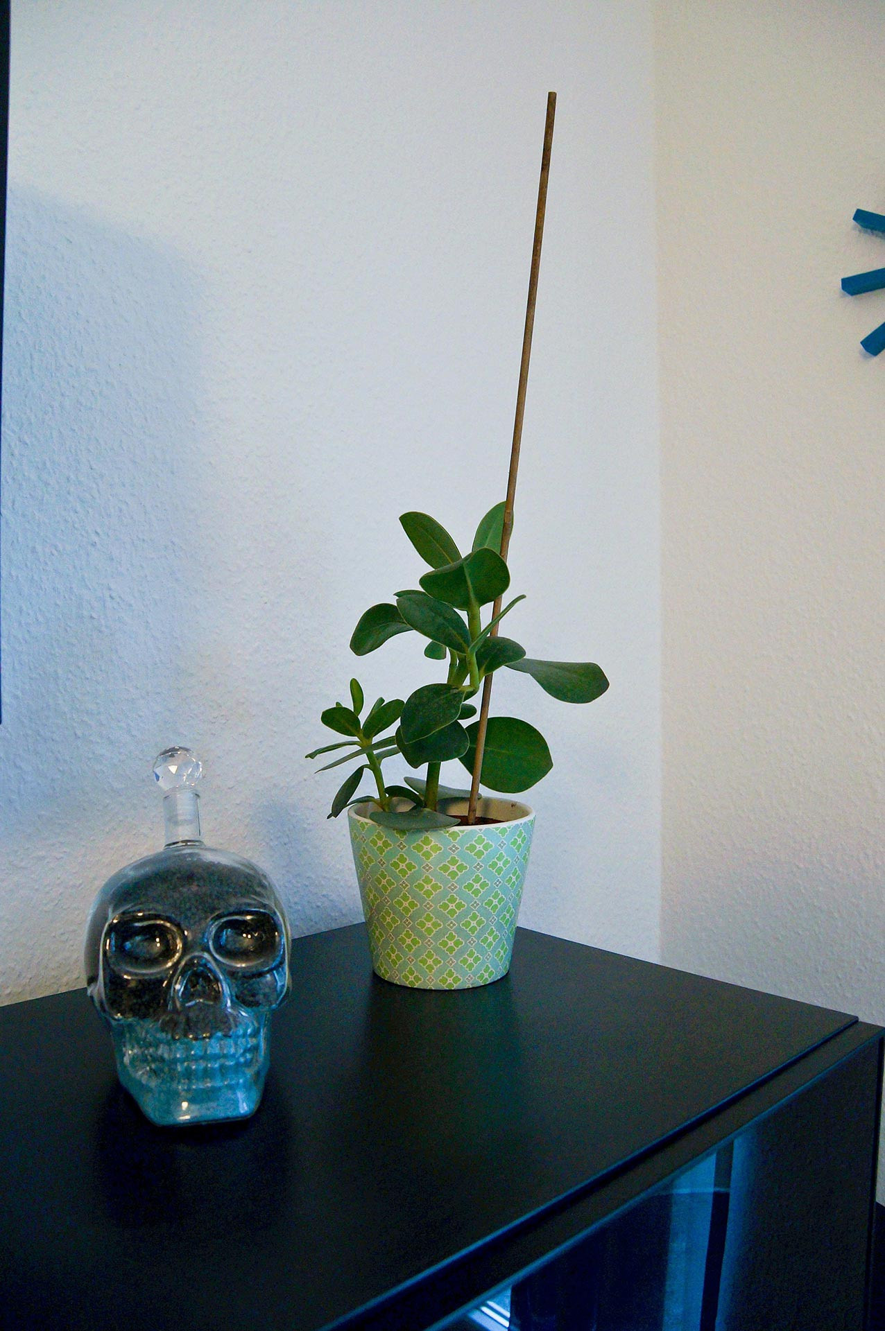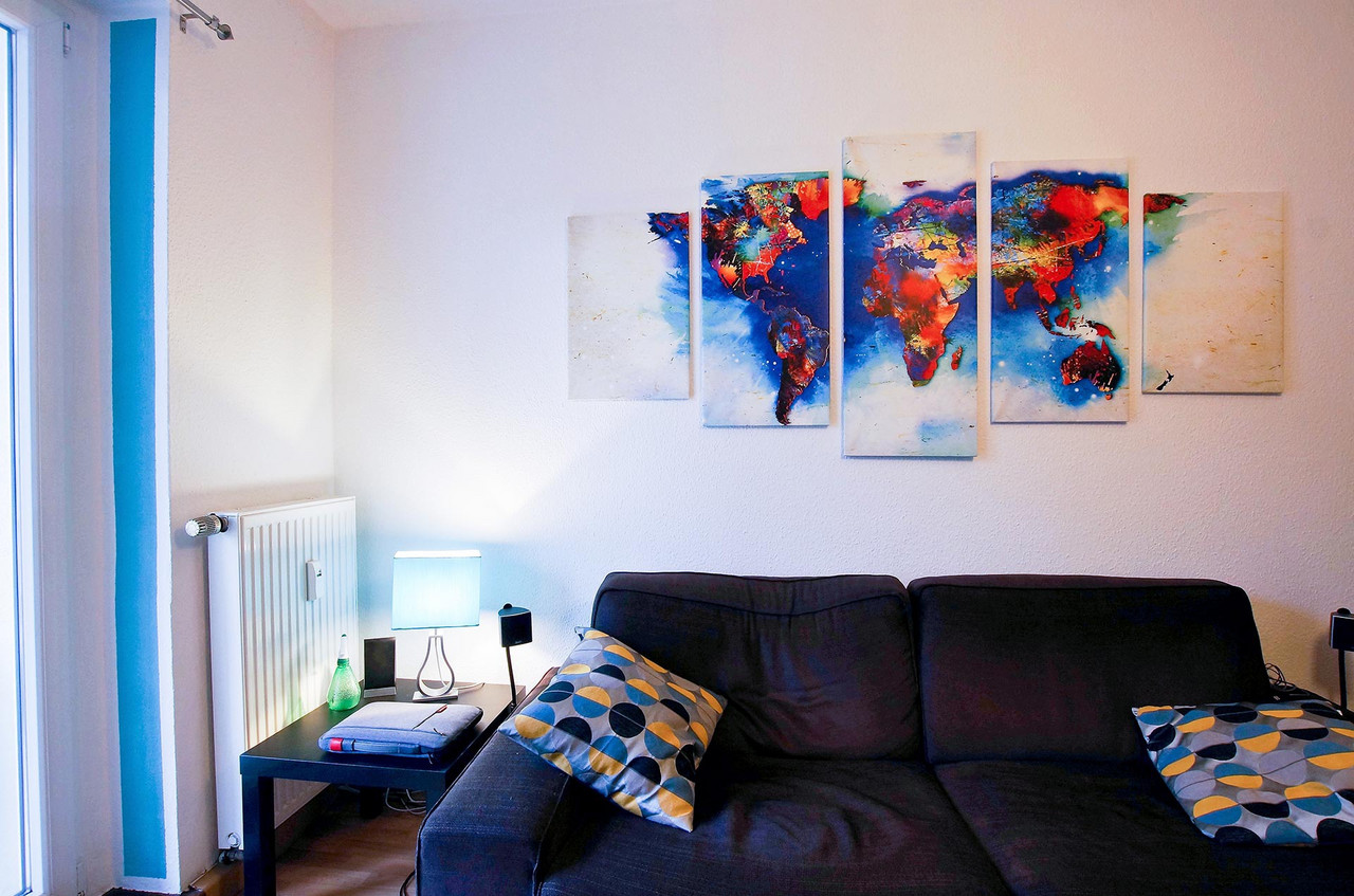 Männer-Wohlfühlzimmer Philipp S. Was ein Männer-Wohlfühlzimmer ist? Eine bequeme Couch steht drin, es gibt einen großen Fernseher, eine Playstation (FIFA) und einen am Tisch fest installierten Flaschenöffner. Man muss kein chronischer Biertrinker sein, um das gut zu finden – meinen jedenfalls die Freunde, wenn sie zum Chillen oder Zocken kommen. Für Philipp S. bedeutet Wohnen das Umsetzen eines eigenen Stils, vielleicht auch einer Haltung. Er liebt schwarz, kombiniert mit Farben. Sie sind bewusst als Möbelfronten, breite Farbstreifen an Wänden oder angedeuteten Rahmen eingesetzt. Das Blau in der Küche hat es ihm angetan. Mit Hilfe von OBI hat er entsprechend der räumlichen Gegebenheiten und dem französischen Fenster als Dominante die Küchenmöbel selbst gebaut. Einige der Emailleschilder hat er sich aus den USA mitgebracht. Er war schon mehrmals dort, vor allem im warmen Florida. Die Connewitzer Wohnung ist seine Basisstation für die Reisen, zu den Konzerten im Coney Island, für die Ausflüge in den Auenwald, zur Constanze oder in die Südbrause und zum monatlichen Essen im Freundeskreis mit wechselnder Gastronomie. Der Außendienstler ist dienstlich und privat viel unterwegs. Oft auch mit Kamera. Landschafts- und Architekturfotografie sind sein Metier. Und wenn es doch mal an der nötigen Motivation mangelt, schätzt er seinen Balkon, insbesondere im Sommer. Vergangenes Jahr stand hier eine 2 Meter hohe rote Sonnenblume. Übersicht Geschichtennächste Geschichte vorherige