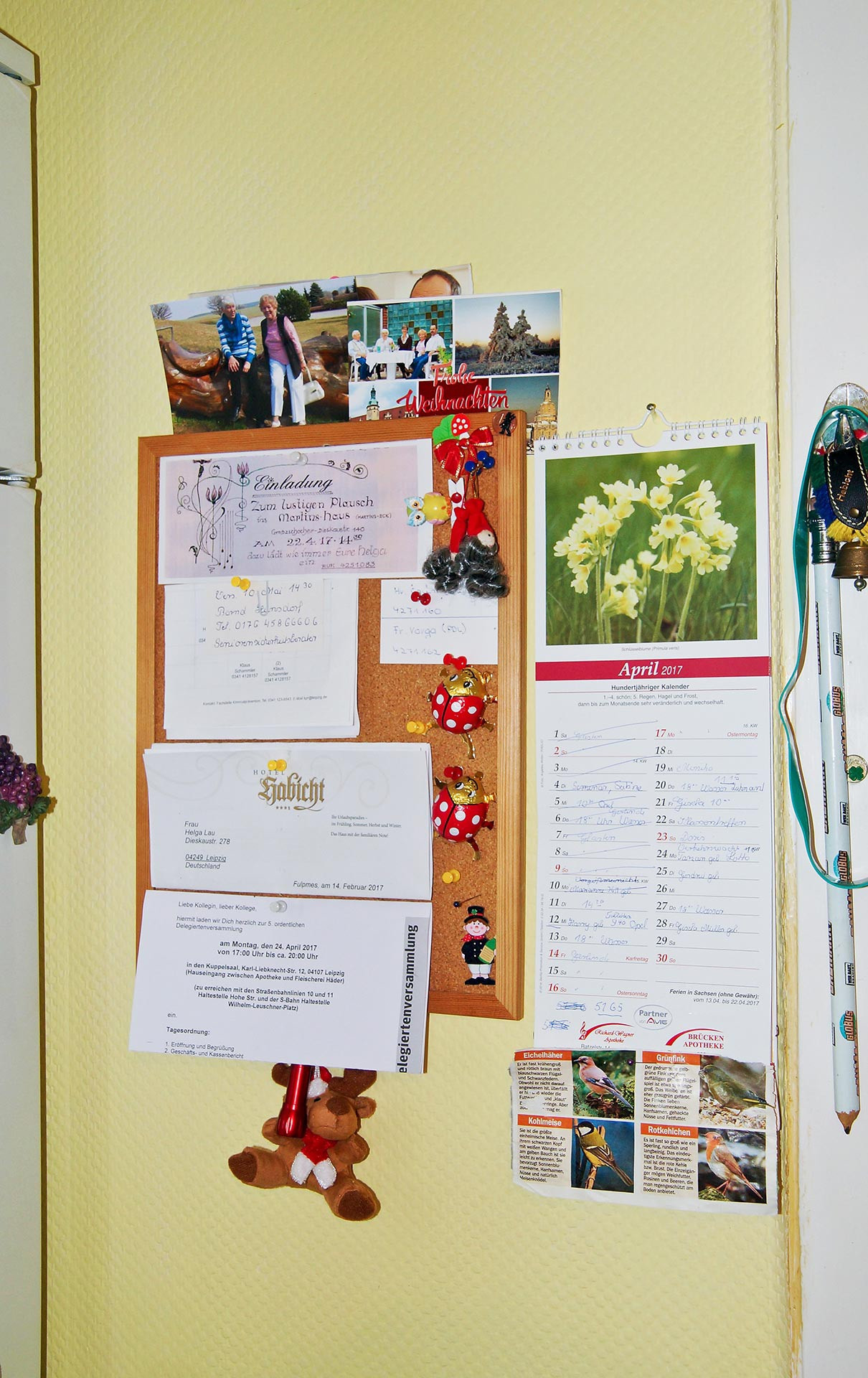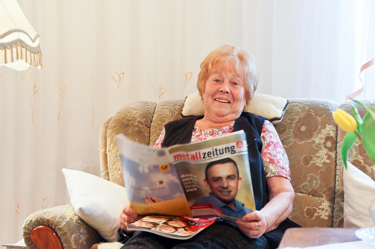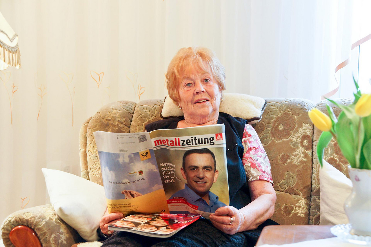 „Sturm der Liebe“, Gewerkschaftsarbeit und der „Cossi“ Helga L. 72 Jahre lang wohnt Helga L. in ihrer Wohnung. Als Zehnjährige ist sie 1945 zusammen mit ihrer Mutter und Schwester in die Wohnung von Oma und Opa eingezogen. Und in der Wohnung geblieben, hat eine Familie gegründet, Kinder groß gezogen. Nachdem ihr Mann vor 17 Jahren verstorben ist, lebt sie allein. Und malert gern. Das heißt, hin und wieder bekommt eine Wand mal eine andere Farbe. Darüber wundert sich die Enkelin bei ihren regelmäßigen Besuchen (einschließlich Wunschessen) nicht mehr. In der nach Umbau deutlich größeren Stube ist Platz für die ganze Familie, zum Beispiel bei Feiern. Die Termine müssen allerdings gut abgestimmt werden, weil Helga L. als begeisterte Schwimmerin vielleicht gerade im Badeurlaub in Ägypten, mit dem Fahrrad zum Baden am „Cossi“, zum Wandern in Tirol oder mit einer Bekannten beim Tagesausflug unterwegs ist. Zwischendurch hat sie für die Gewerkschaft zu tun. Seit 1950 ist sie Mitglied, seit 1999 aktives Mitglied – damals über die Aktion 55. Heute treffen sich die Mitstreiter einmal im Monat zur Beratung für anstehende Aufgaben der außerbetrieblichen Gewerkschaftsarbeit – zweimal im Jahr organisieren sie Versammlungen in verschiedenen Stadtbezirken, wobei sie für Südwest zuständig ist. Und wenn dann noch Zeit sein sollte, setzt sie sich in den Sessel, legt die Beine hoch, liest in der Zeitung oder sieht ihre Lieblingsserie „Sturm der Liebe“. Übersicht Geschichtennächste Geschichte vorherige