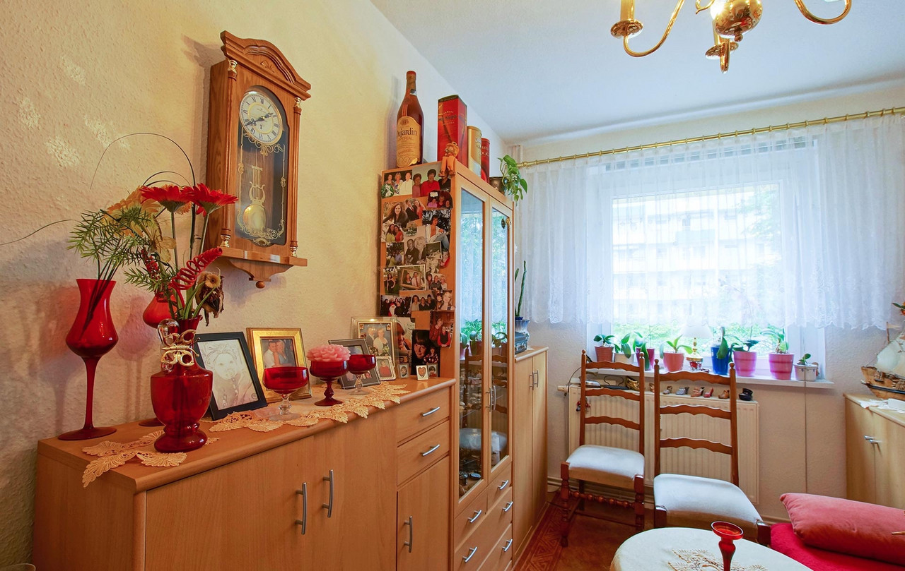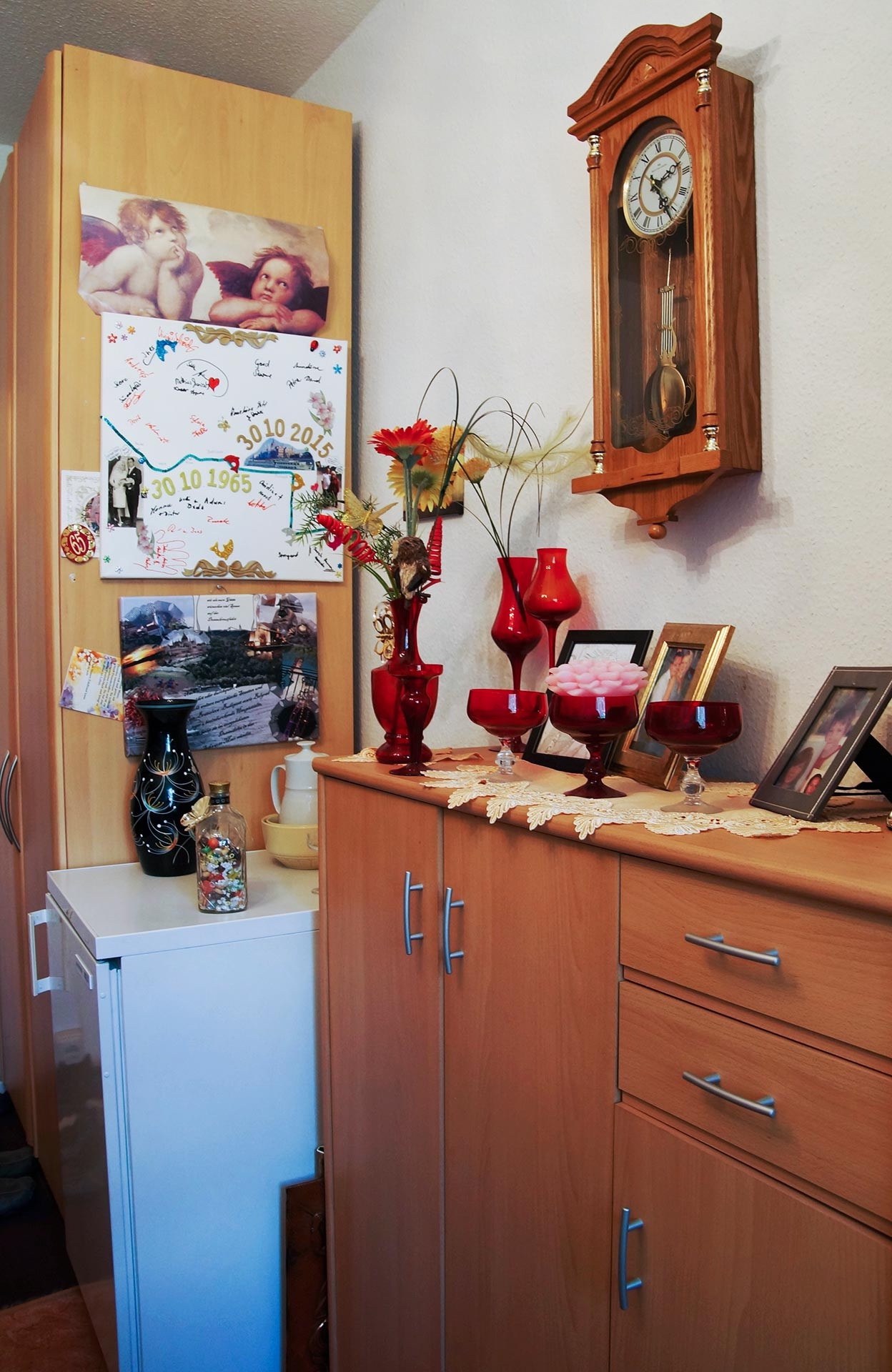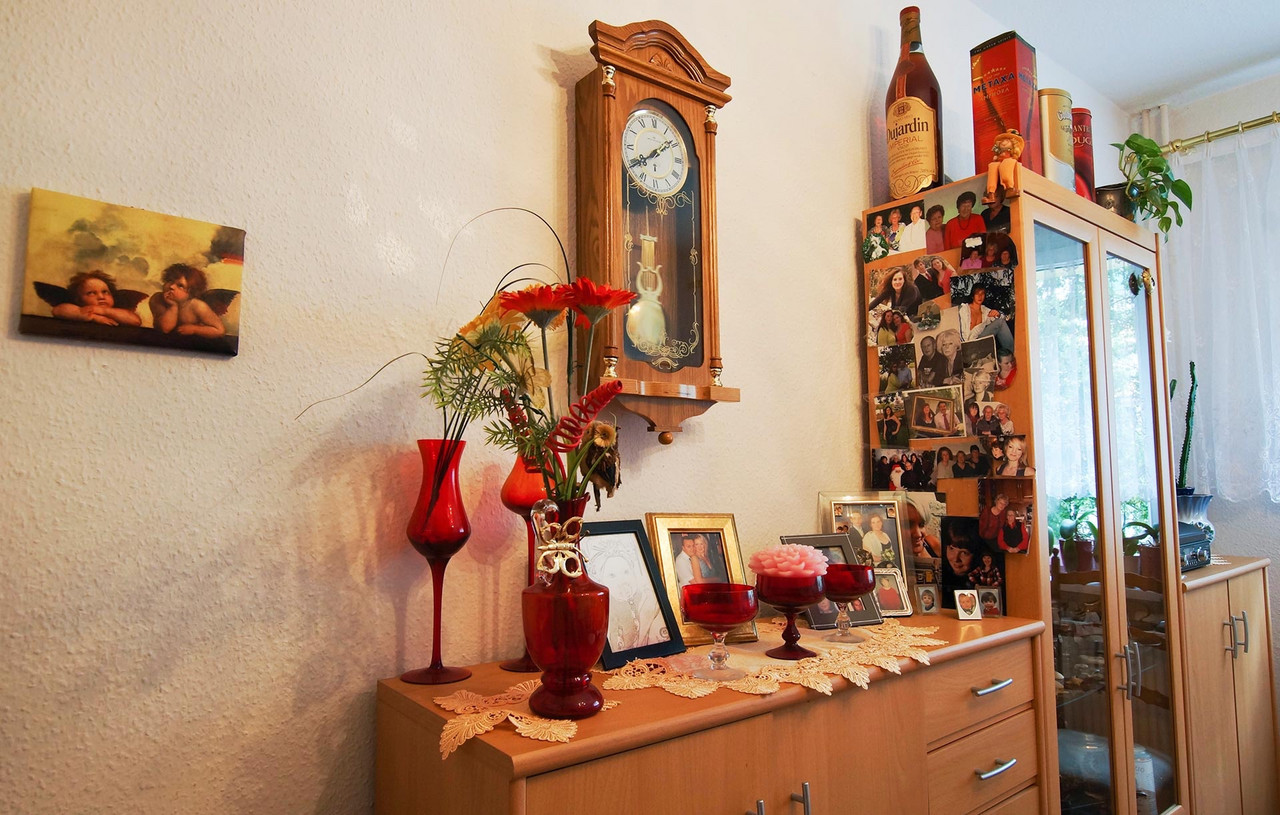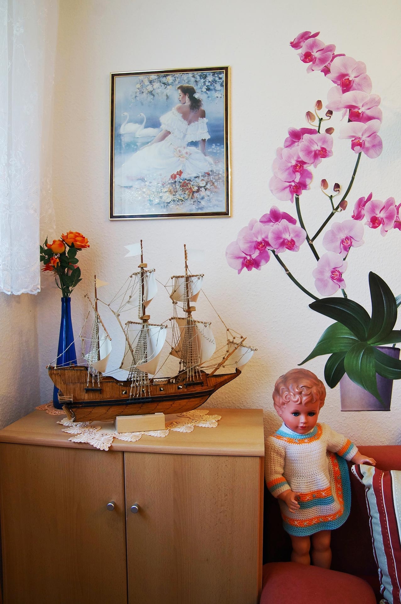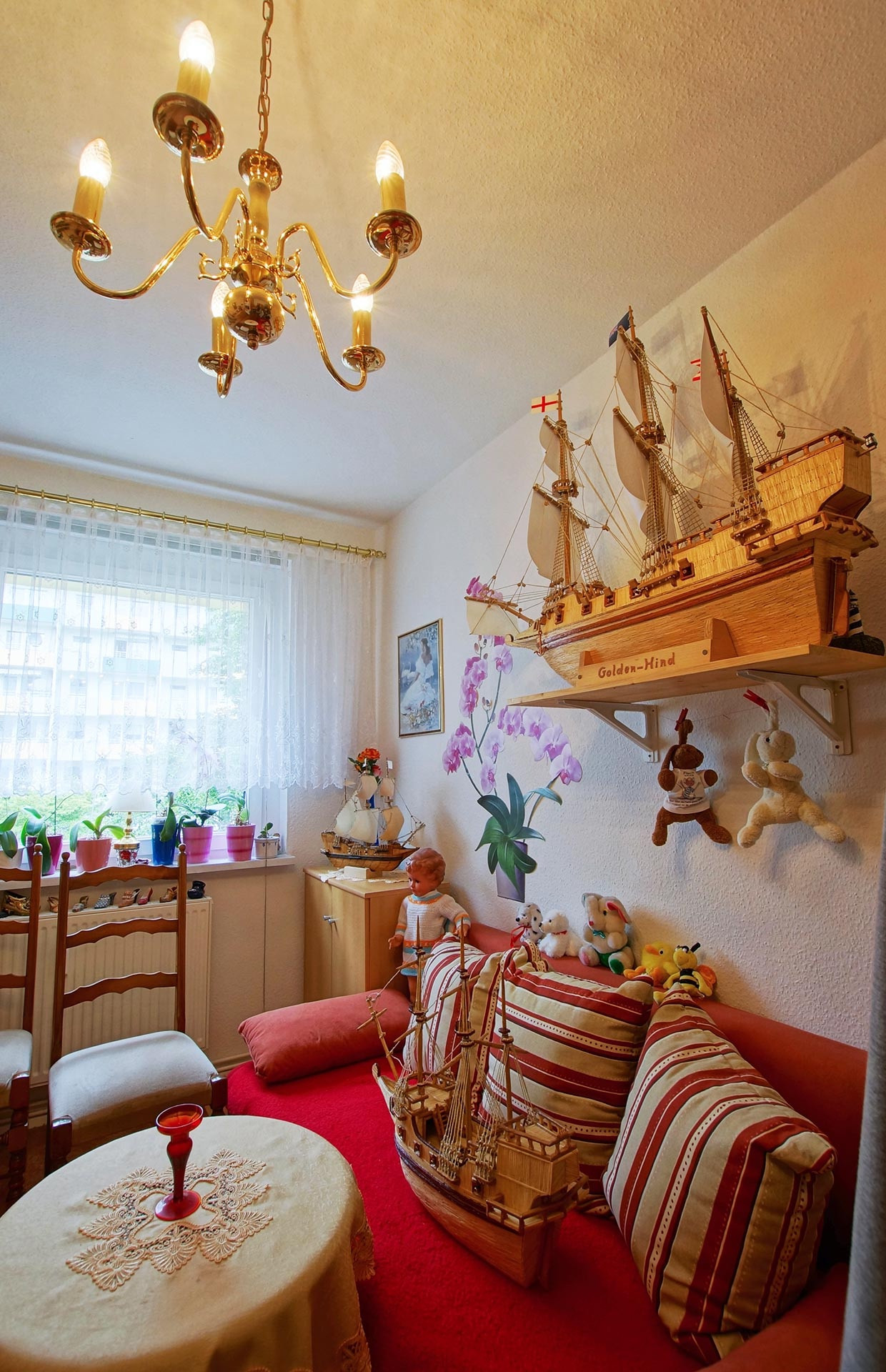 2 Kinder, 4 Enkel, 6 Urenkel: Die Grünauer Edeltraud und Dieter D. sind Familienmenschen Edeltraud und Dieter D. Gleich drei passende Wohnungen mussten im Zuge der allgemeinen Rückbauaktion in Grünau für die Großfamilie gefunden werden. Und es hat geklappt. In der Mannheimer Straße bei der BGL hat jeder das Richtige gefunden. Die Grundrisse, die Lage und das Drumherum passten und was für die Eltern Edeltraud und Dieter D. besonders wichtig war, alle waren wieder beisammen. Das ist nun reichlich zehn Jahre her. Eine Zeit, in der sich viel ereignete: Geburten, Krankheiten, erfüllte Hoffnungen, Enttäuschungen. Kurz: die ganze Bandbreite des Lebens. Da braucht es schon ein paar Eckpfeiler der Beständigkeit. Und die haben sie – sie haben sich und ihre Wohnung. Für sie ein Ort, an dem sie sich wohlfühlen, sich zurückziehen, sich freuen oder auch zur Ruhe kommen können. Ein Ort, an dem sie mit der Familie, mit Freunden und Bekannten zusammen sein können oder jeder für sich seinen Lieblingsbeschäftigungen nachgeht. Davon gibt es einige: Dieter D. ist passionierter Schiffsmodellbastler (aus Streichhölzern), Angler, Beeren-, Pilz- und Zinngefäßesammler. Edeltraud D. hält eher Ausschau nach Minibüchern, kleinen Figuren, Porzellan mit Kobalt- oder Zwiebelmuster oder den 11 Punkte Engeln, für Liebhaber unschwer an den 11 Punkten auf den grünen Flügeln zu erkennen. Erinnerung und Schmuck zugleich sind die Möbelstücke und Lampen die von seinen Eltern auch den Charakter der Wohnung bestimmen oder die unübersehbare Puppensammlung von ihren Eltern. In der warmen Jahreszeit verbringen sie gern Zeit auf dem Balkon, frühstücken dort, schwatzen, rätseln oder spielen Karten. Sind miteinander. Übersicht Geschichtennächste Geschichte vorherige
