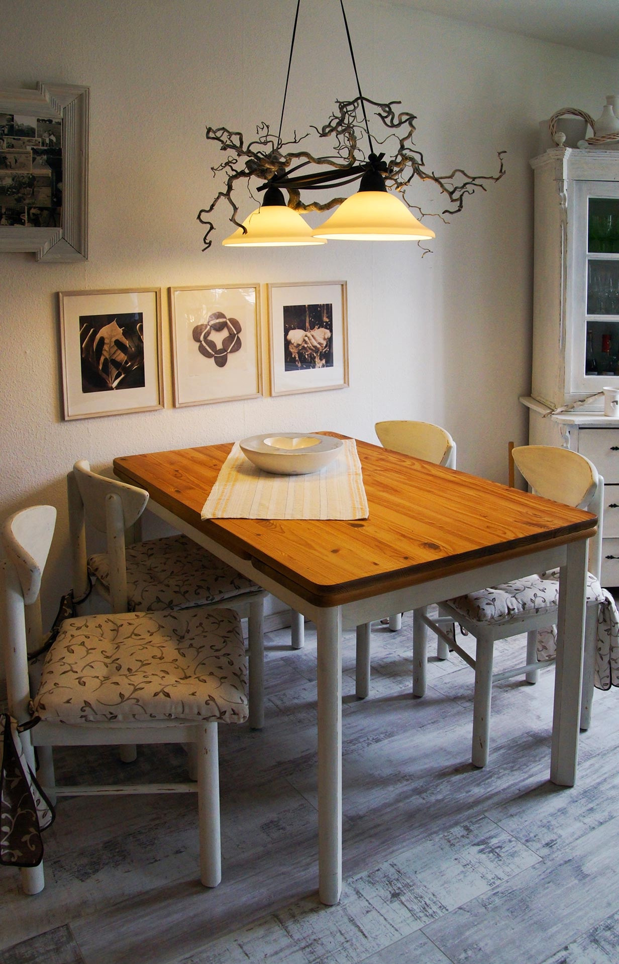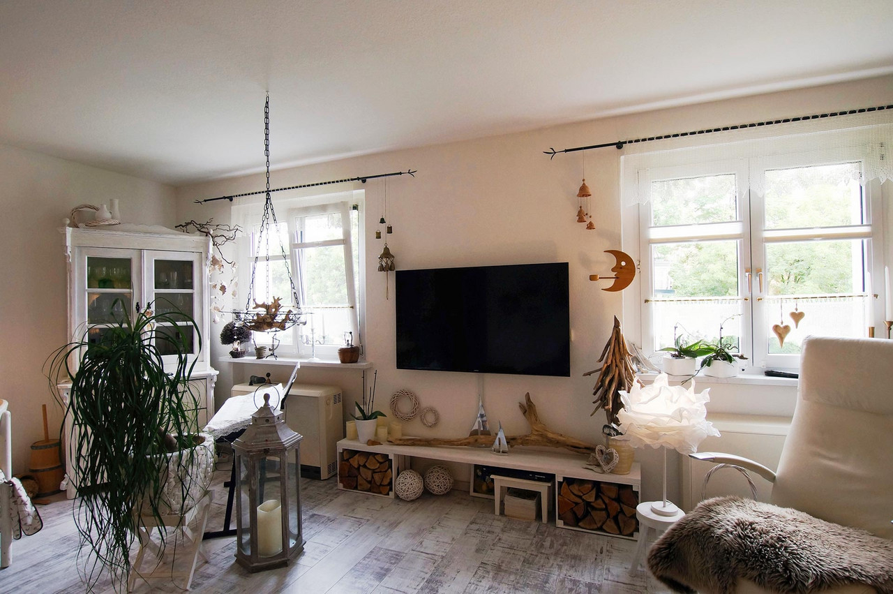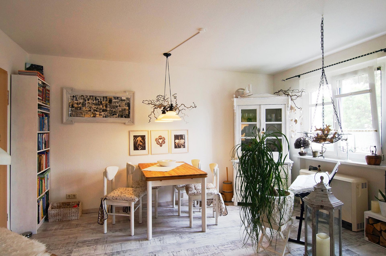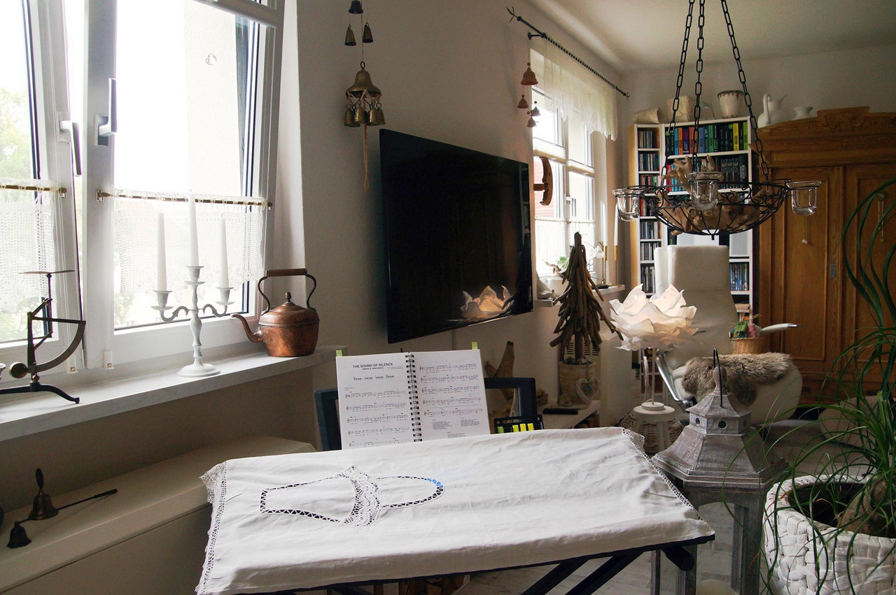 Mord und Totschlag und kreativ gestalten Simone S. und Uwe F. Sie sind Leseratten. Gern haben sie es abgründig, mörderisch, auf alle Fälle fesselnd. Die Buchtitel im Regal versprechen einiges: „Mörderhotel“, „Tödliches Lachen“ oder „Jung. Blond. Tot.“ Simone S. und Uwe F. begeben sich literarisch gern in die Halbwelt. Wenn der Krimi keine Chance hat, spazieren sie mit Zwergschnauzer “Pauline“ am Kulki, durch die umliegenden Gärten oder erkunden mit dem Motorroller die Umgebung. Oder Simone S., beruflich im Büro aktiv, ist beim „Nestmachen“. „Jeder macht sich doch seine Wohnung ein bisschen wie ein Nest, so wie es jeder gemütlich, schön und zum Wohlfühlen findet“. Dabei ist Simone S. sehr kreativ. Fast immer findet nach einer Wanderung oder einer Reise ein besonderer Stein oder ein ausgefallen geformtes Stück Holz als dekoratives Element ein neues Zuhause in der Markranstädter Wohnung. Beim Gestalten wird gestrickt, gehäkelt, restauriert oder aus altem Silberbesteck entstehen überraschende Schmuck-Ringe, denen man ihre Herkunft als Ess-Werkzeug nicht mehr ansieht. Das große Wohnzimmer, übrigens das Entscheidende bei der Wohnungssuche, bietet großzügigen Raum zum Gemütlich-Machen. Und natürlich auch für das Keyboard. Sie spielt, auch zu Weihnachten, selbst wenn bei manch zuhörender Tochter oder Enkel das Gefühl für das Gefühlige erst noch wachsen wird. Übersicht Geschichtennächste Geschichte vorherige