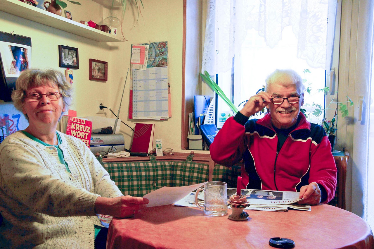 Über den lustigen Friedhof in Rumänien und das Walken im Stüntzer Park Ilona und Siegfried M. Über 700 farbenfrohe Holzkreuze hat der Bildhauer, Maler und Dichter Ion Stan Patras für die Verstorbenen im rumänischen Saptana angefertigt. Auf der Vorder- und Rückseite wurde jeweils mit Malereien und Versen das Leben sowie die Art und Weise, wie der Verstorbene zu Tode gekommen ist, dargestellt. Auch diesen Ort besonderer Begräbniskultur besuchten die reisefreudigen Ilona und Siegfried M. Mit dem Trabi durch Rumänien (das legendäre „Komm mit“ im Rucksack), zum Wandern und Klettern nach Bulgarien oder in die Tatra. Nach der Wende ging es weiter in die Fremde, nach Sizilien, die weiteste Reise führte sie von San Francisco nach New York. Noch heute zehren sie von ihren Erinnerungen. Allerdings gibt es da sehr viel Substanz. Als Bergsteiger und Sportkletterer – beide im Verein Lok-Leipzig West, sie mehr fürs leibliche – kennen sie beinahe sämtliche Felsen in der Sächsischen Schweiz. Als Radwanderer, früher fuhren sie meist zu sechst einmal jährlich eine Woche entlang der großen Flüsse: Donau, Weser, Havel, Oder …. Aber die Tage sind auch heute für den ehemaligen Druckmaschinenspezialisten und die frühere Sekretärin bei der Bahn gut gefüllt. Man geht mit Freunden Bowlen, dreht seine Runden in Anger-Crottendorf oder Ilona M. strickt. Sie strickt Socken für die ganze Familie und für das Baby-Starter-Paket der Stadt Leipzig. Dann gibt es noch den Garten mit Obst, Gemüse, Blumen und Sommerfest in Stötteritz und ihr Lieblingsplätzchen die Sitzecke in ihrer Küche. So ist es gut. Übersicht Geschichtennächste Geschichte vorherige