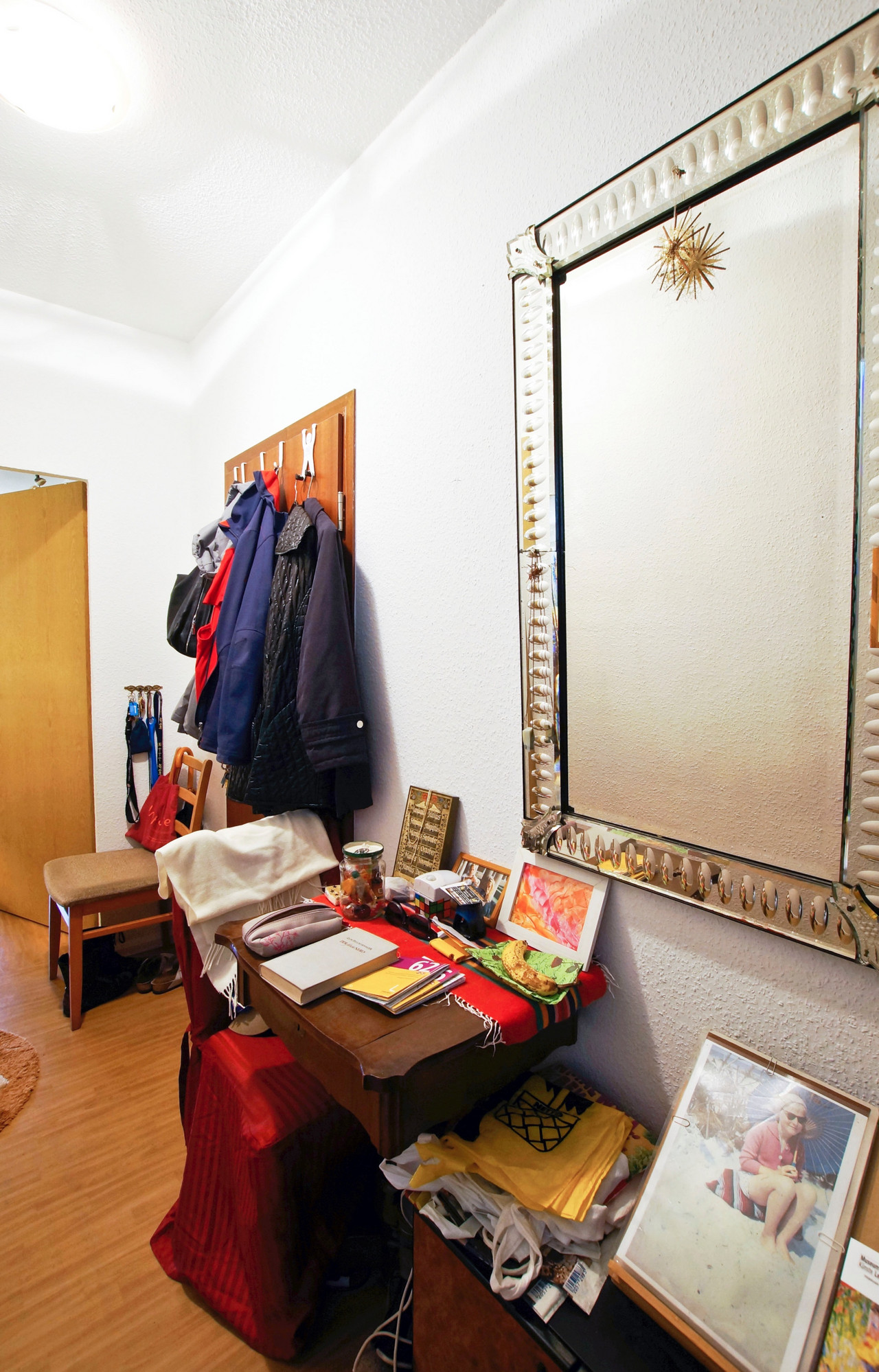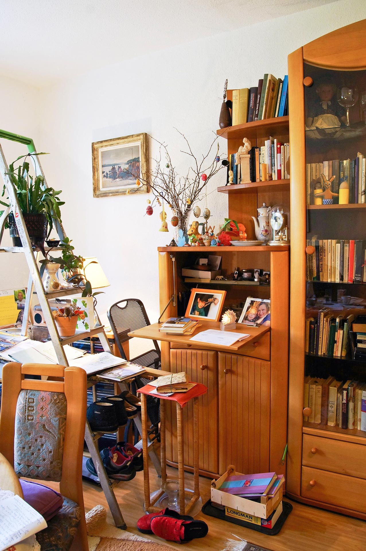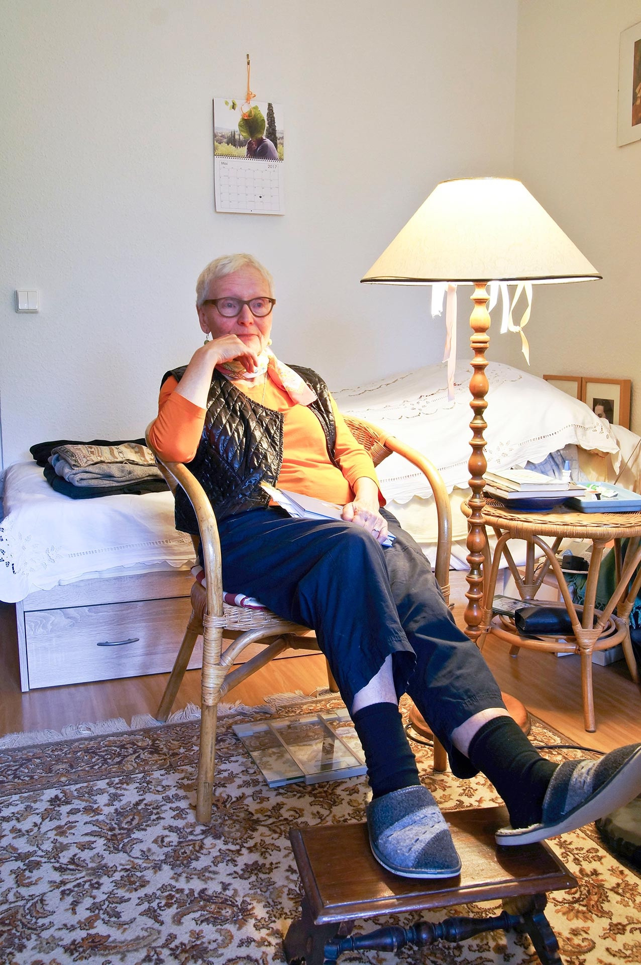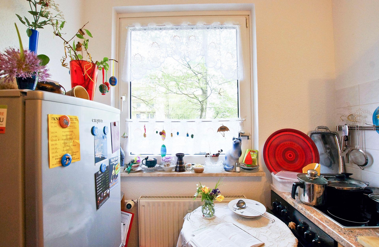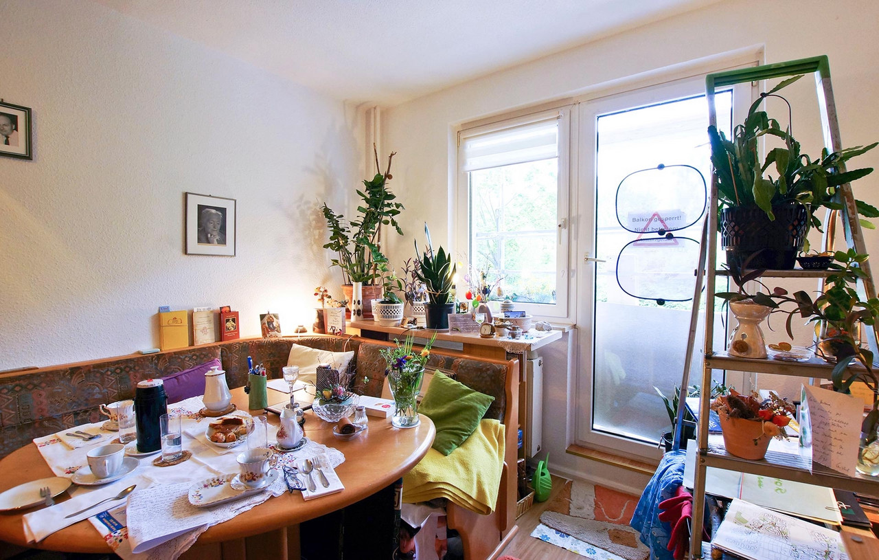 Zuhause Barbara K. Endlich. Nach insgesamt 13 Umzügen hat Barbara K. das Gefühl, wirklich angekommen zu sein. Glücklich ist die Sonnenanbeterin vor allem über den sonnigen Balkon und über die Nähe zu Sohn, Tochter, Enkelin. Außerdem freut sich die Neugrünauerin über die vielen Ziele für Spaziergänge oder Unternehmungen mit den Öffentlichen. Auch der Weg zur Probe beim Grünauer Chor mit dem sympathischen jungen Chorleiter Mattis ins Seniorenzentrum ist überschaubar. Vermutlich gibt es einen Zusammenhang zwischen dem Spaß am Singen und dem Vergnügen bei Faschingsfeiern. Für Barbara K. auf alle Fälle. Lust am Karneval schließt Tiefgang nicht aus – im Gegenteil. Seit 1970 führt Barbara K. Tagebuch, die persönlichen Einträge werden durch jeweils aktuelle Fotos ergänzt. Über einen solch langen Zeitraum erzählt ein Tagebuch dem Tagebuchschreiber viel über sich selbst. Ganz bewusstes, intensives Wahrnehmen ist ihr wichtig, beim Lesen, beim unterwegs sein. Aufmerksam sein, sich öffnen, Eindrücke aufsaugen – für Barbara K. ein Elixier. Übersicht Geschichtennächste Geschichte vorherige