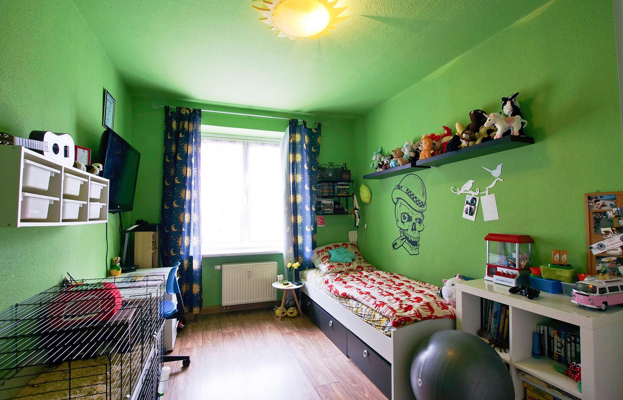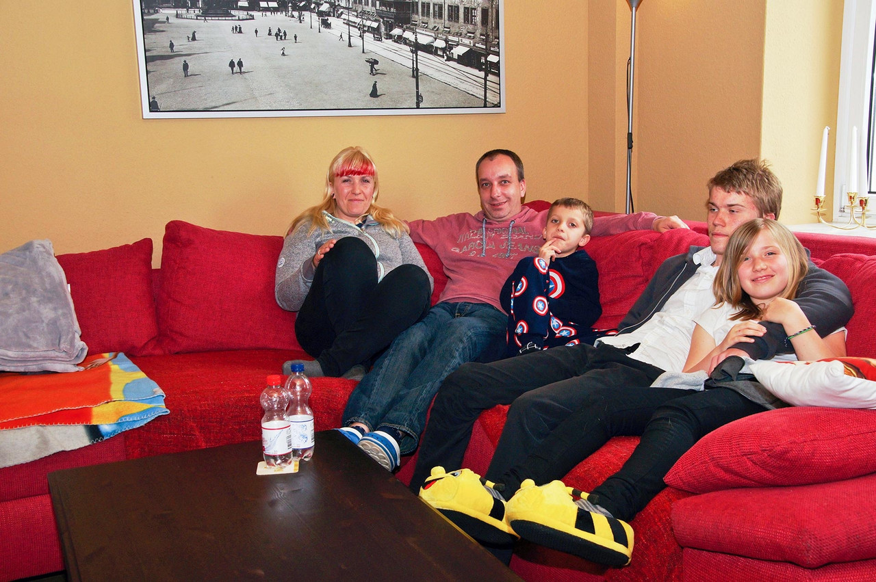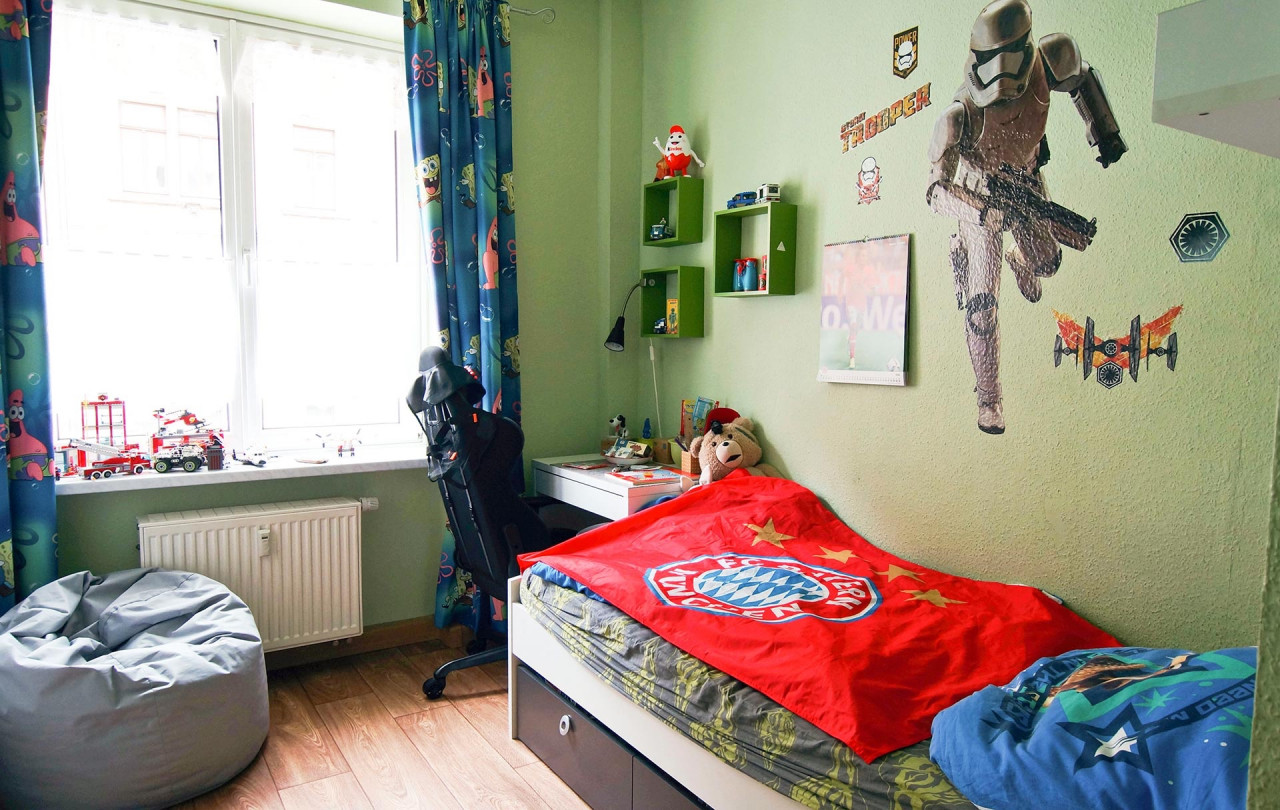 Bunt, abwechslungsreich und überraschend Familie S. Der Lieblingsplatz ist auf dem Sofa. Von allen. Am liebsten gleichzeitig. Da sitzen einträchtig Vicky 10 Jahre – Sportskanone und BVB-Fan, neben dem frisch jugendgeweihten Erik, 15 Jahre, der achtjährige Lenny – FIFA-Spieler und Bayern-Fan und Krankenpfleger Daniel S., früheres Mitglied einer Heavy Metal Band. Mutter Annett S. freut sich drüber und ist auch ein bisschen stolz auf die Familienbande. Unterschiedliches wird ermöglicht und das Gemeinsame überwiegt doch. Annett und Daniel S. haben lange gesucht, bis sie die Wohnung entsprechend ihrer Auswahlkriterien in Connewitz gefunden haben: Preis, Leistung, Lage, Männer- und Frauenbad, Hof. Großes Manko: kein Balkon, dafür aber Garten um die Ecke. Vor zwei Jahren noch ein Riesenplus, die Oma konnte in die Wohnung direkt über ihnen einziehen. Laut Vicky mit dem tollsten Boxspringbett, dem unübertrefflichen Geheimrezept für Erdbeertorte, den eindeutig weltbesten Eiern in Senfsoße und der Küche, wo Oma Leckeres kocht und in der man sich zu obergemütlichen Kaffee- und Kuchenrunden trifft. Übersicht Geschichtennächste Geschichte vorherige