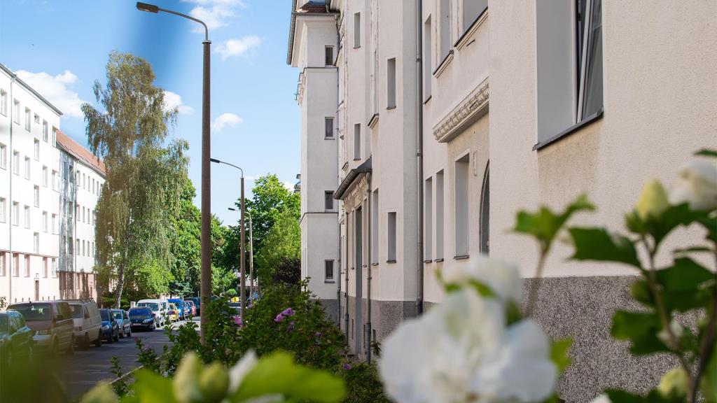 Objektreferenz: 1/2004/3/28 Die Wohnanlagen Carpzovstr., Hofer Str., Max-Pommer-Str. und Wolfshainer Str. verfügen über 1-4 Zimmerwohnungen überwiegend mit Loggia oder Balkon mit moderner Ausstattung. Besonders sind die parkähnlichen Innenhöfe mit Spielgerät und Sitzmöglichkeiten und einigen Autostellplätzen. Die sanierten Altbauten bieten Wohnmöglichkeiten für alle Generationen - für Wohneinsteiger bis hin zur Familie. Es gibt z.B. Seniorenwohnungen im Hochparterre bzw. 1. Obergeschoss.